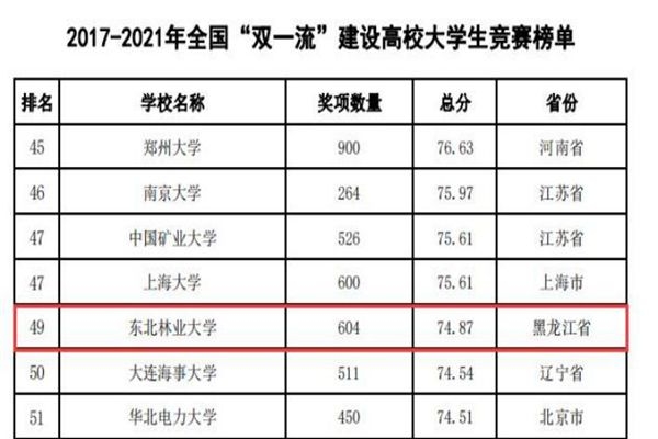 東北林業(yè)大學連續(xù)四年蟬聯(lián)全國農林類本科院校大學生競賽排行榜榜首