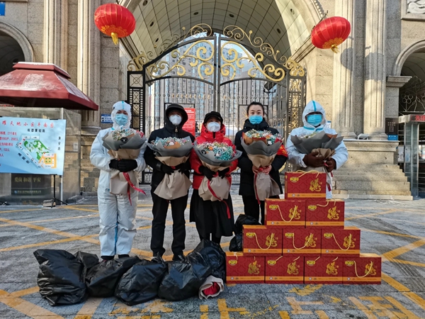 黑龍江經(jīng)濟(jì)網(wǎng)訊(靳超 記者崔冰)慰問暖人心,關(guān)懷顯真情。2月3日,黑龍江省誠信建設(shè)促進(jìn)會會長張波、副會長于海波帶領(lǐng)秘書處人員來到哈市榮耀天地小區(qū)看望慰問堅守在抗疫一線的寶宇物業(yè)管理有限公司的工作人員,傳遞殷切關(guān)懷。張波會長和物業(yè)工作人員們深入交流,詳細(xì)了解了他們近期的工作和生活情況,并為他們送來紅腸及由哈爾濱市萬花集鮮花店捐贈的鮮花等物資。