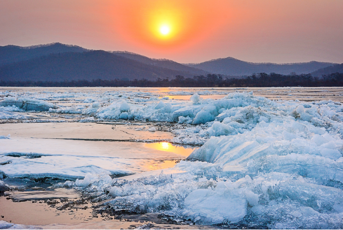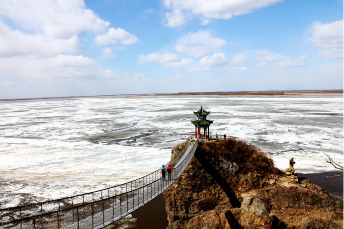 在烏蘇里江的源頭虎頭欣賞開江壯景,別有一番風味。可登上佇立在江畔的東方第一塔,遠眺俄羅斯對岸,居高而下,欣賞烏蘇里江冰層炸裂、冰排涌動的全景,聆聽冰排漂流撞擊發(fā)出的陣陣聲響。