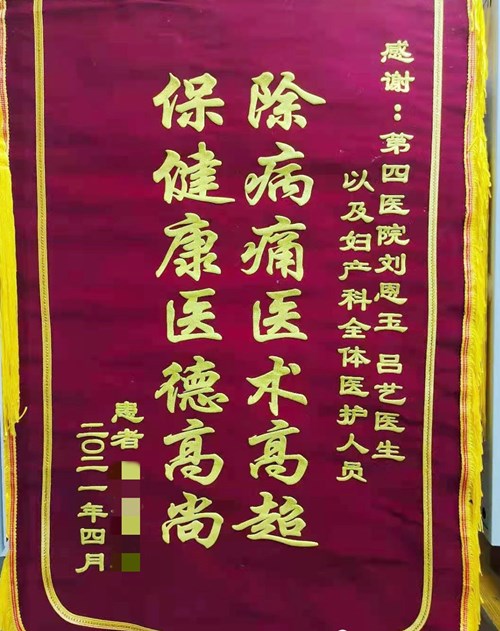 黑龍江經(jīng)濟(jì)網(wǎng)訊(王子豪)在醫(yī)護(hù)人員的精心治療下,董女士終于恢復(fù)了健康,她為哈爾濱市第四醫(yī)院婦產(chǎn)科劉恩玉主任、呂藝醫(yī)生及護(hù)士們送上錦旗,表達(dá)她的滿滿謝意。