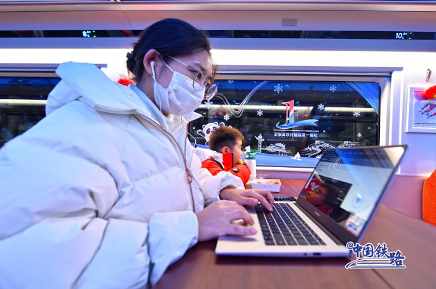 藍色的燈光、潔白的雪花、絢麗動感的車窗貼紙……在京張高鐵服役的復(fù)興號智能動車組將冬奧元素、運動精神和鐵路文化融為一體。