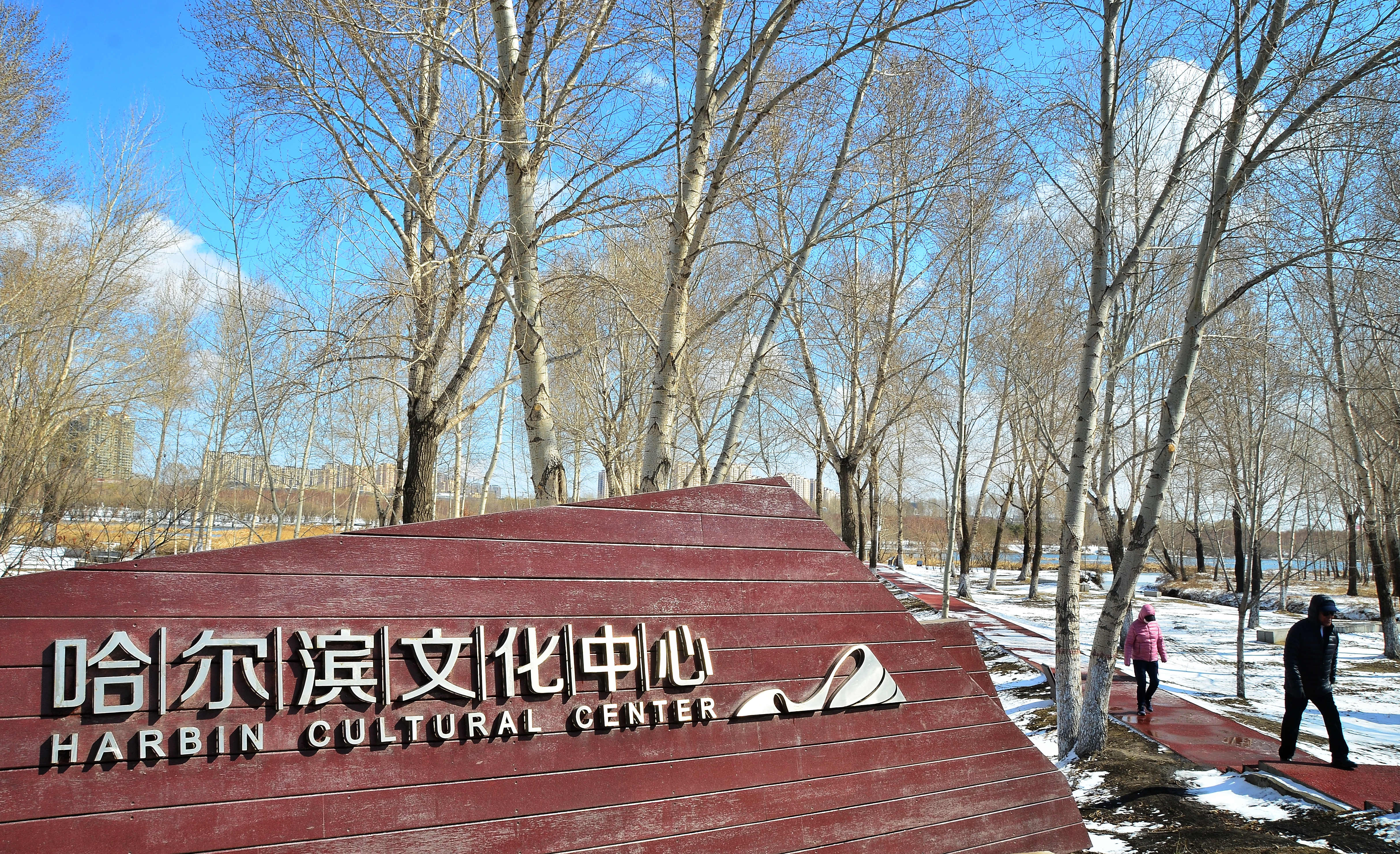 市民游覽哈爾濱文化中心濕地公園