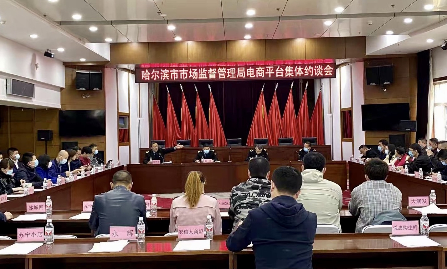 龍頭新聞?dòng)崳?span style="text-indent: 32px;">朱大治 記者 劉莉)近年來(lái),哈爾濱食品、食用農(nóng)產(chǎn)品電商迅猛發(fā)展,已成為市場(chǎng)銷售環(huán)節(jié)的“主力軍”。為確保銷售環(huán)節(jié)主要渠道食品和食用農(nóng)產(chǎn)品安全,督促經(jīng)營(yíng)者履行食品安全主體責(zé)任,針對(duì)電商平臺(tái)和經(jīng)營(yíng)者還存在備案登記、公開公示、主體資格審查、進(jìn)貨查驗(yàn)等方面不符合要求的問(wèn)題,23日,哈爾濱市市場(chǎng)監(jiān)督管理局組織美團(tuán)、京東、拼多多、橙心優(yōu)選等33家電商平臺(tái)及22家大型連鎖食品經(jīng)營(yíng)企業(yè)進(jìn)行了集體約談。