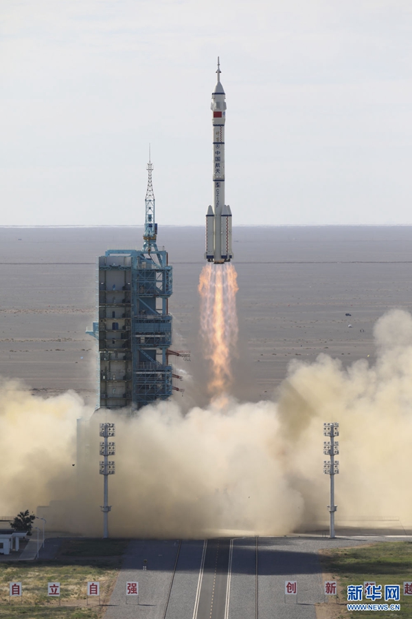 2021年6月17日9時(shí)22分,搭載神舟十二號(hào)載人飛船的長(zhǎng)征二號(hào)F遙十二運(yùn)載火箭,在酒泉衛(wèi)星發(fā)射中心準(zhǔn)時(shí)點(diǎn)火發(fā)射,約573秒后,神舟十二號(hào)載人飛船與火箭成功分離,進(jìn)入預(yù)定軌道,順利將聶海勝、劉伯明、湯洪波3名航天員送入太空,飛行乘組狀態(tài)良好,發(fā)射取得圓滿成功。新華社記者 琚振華 攝