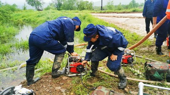 呼源鎮(zhèn)立即上報,呼中區(qū)主要領導得知后立即趕赴現(xiàn)場親自指揮,呼源鎮(zhèn)聯(lián)合大興安嶺地區(qū)森林消防支隊呼中大隊和呼中城鎮(zhèn)消防救援大隊,共出動人員30余人,結(jié)合地形地貌采取多設備抽水排澇的方式,分成5組,經(jīng)過4臺2噸抽水設備、1臺4噸抽水設備2個多小時的不間斷作業(yè),水位明顯下降,守護了用電安全。
