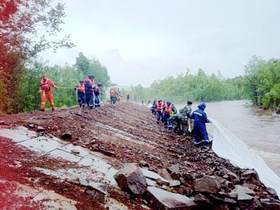 截至目前,呼中區(qū)局共計投入?yún)⑴c搶險救援2000余人次,調(diào)用飛機2架次,共調(diào)集鉤機、裝載機、翻斗車等大型機械車輛60臺,投入編織袋10000條、土石料3000立方米、砂石料4000立方米、照明設備20臺、發(fā)電機25臺、投入鐵線200捆,編制鐵絲籠1000平方米,搶險7處,轉(zhuǎn)移受災群眾12戶19人。
