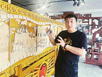 “在建黨100周年之際欣賞這幅作品,猶如讓我上一堂生動的黨史課,精美的木雕作品中有反映解放軍浴血奮戰(zhàn)的場景,有反映軍民魚水情的畫面,也展示了我們祖國今天的富強(qiáng),讓我深切感受到作品背后的紅色故事、紅色精神。這件作品不僅表達(dá)了雕塑家自己的心聲,也表達(dá)了生長在這片紅色土地上的北安人對祖國的熱愛、對今天幸福生活的感恩和珍惜。”前來參觀的市民劉力表示,這件木雕作品太有意義了。