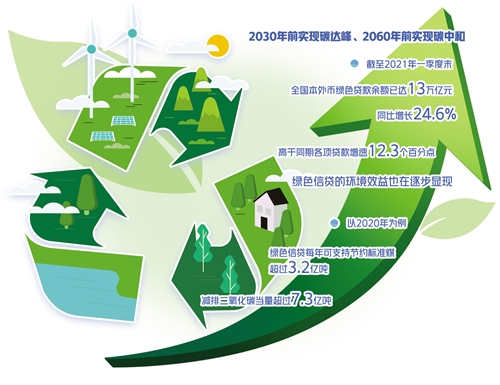實(shí)際上,近年來我國(guó)的綠色金融發(fā)展力度已持續(xù)加大。最新統(tǒng)計(jì)數(shù)據(jù)顯示,截至2021年一季度末,全國(guó)本外幣綠色貸款余額已達(dá)13萬億元,同比增長(zhǎng)24.6%,高于同期各項(xiàng)貸款增速12.3個(gè)百分點(diǎn)。綠色信貸的環(huán)境效益也在逐步顯現(xiàn)。以2020年為例,綠色信貸每年可支持節(jié)約標(biāo)準(zhǔn)煤超過3.2億噸,減排二氧化碳當(dāng)量超過7.3億噸。