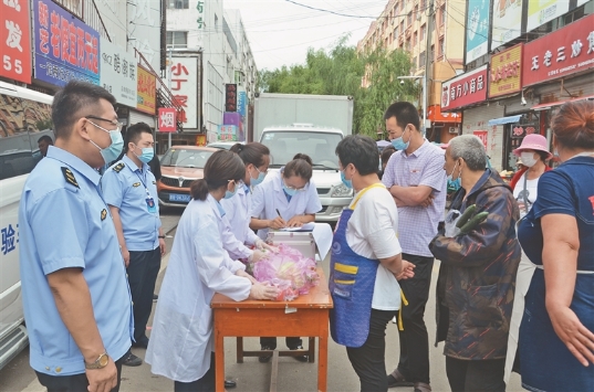 黑龍江日報訊(王宏濤 黑龍江日報全媒體記者 劉柏森)近日,密山市市場監(jiān)督管理局將食品快檢車開進農(nóng)貿(mào)市場,通過“你點我檢”方式,對市場上銷售的蔬菜、肉類進行現(xiàn)場快檢,讓群眾買的放心、吃的安心。