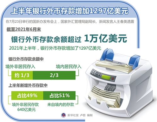 近日,國家外匯管理局披露的數(shù)據(jù)顯示,今年上半年,我國銀行的外幣存款不斷累積,4月份,外幣存款突破了1萬億美元大關。如何看待這一現(xiàn)象?
