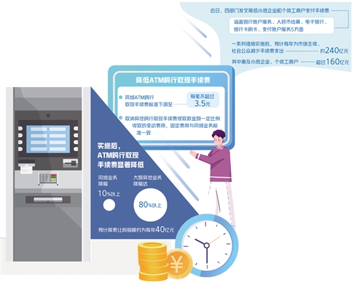 據(jù)統(tǒng)計(jì),全部降費(fèi)措施實(shí)施后預(yù)計(jì)每年減少手續(xù)費(fèi)支出約240億元。其中,惠及小微企業(yè)、個(gè)體工商戶超過160億元。
