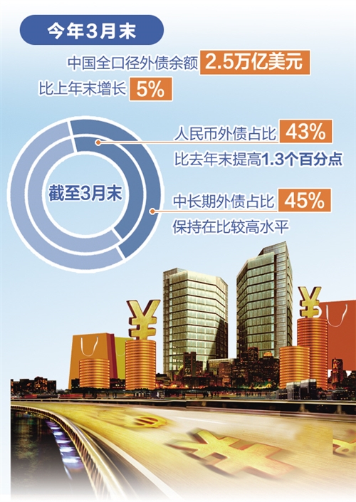 近日,國(guó)家外匯管理局發(fā)布數(shù)據(jù)顯示,今年3月末,中國(guó)全口徑外債余額2.5萬(wàn)億美元,比上年末增長(zhǎng)5%,增幅和過(guò)去幾年每個(gè)季度的增幅基本相當(dāng)。總體來(lái)看,近年來(lái),中國(guó)的外債規(guī)模穩(wěn)步增加,當(dāng)前延續(xù)了這一態(tài)勢(shì)。