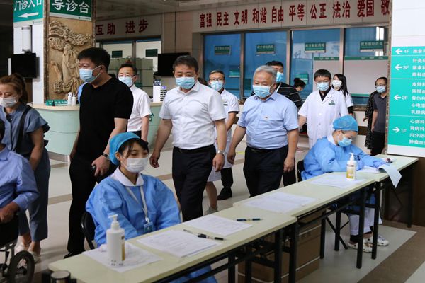 郭宏偉一行先后視察附屬第一醫(yī)院門診預檢分診處、呼吸科門診、口腔科門診、耳鼻咽喉科門診、心血管病一科病房、核酸采集處、省重大疫情中西醫(yī)結(jié)合救治基地建設項目施工工地等,并對醫(yī)院在當前疫情形勢下,積極行動,主動作為,迅速查短板、補漏點,防患于未然,堅決防止院內(nèi)感染所做出的全方位努力給予高度認可和充分肯定。