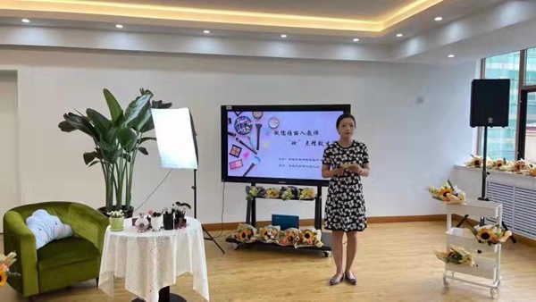 活動現(xiàn)場溫馨、淡雅,一簇簇美麗的鮮花裝扮會場,烘托出濃濃的節(jié)日氛圍?;顒又?,省直三園教師張?zhí)煅鬄槔蠋焸冏隽艘粓鲫P于化妝的講座。從化妝類型、工具,到化妝技巧以及化妝品的使用,詳細進行了分析、指導,并就大家平時比較關心的日常和舞臺妝容兩部分進行講解。為了讓大家有直觀認識,現(xiàn)場還進行了化妝演示,激發(fā)了大家參與的熱情,現(xiàn)場掌聲不斷。