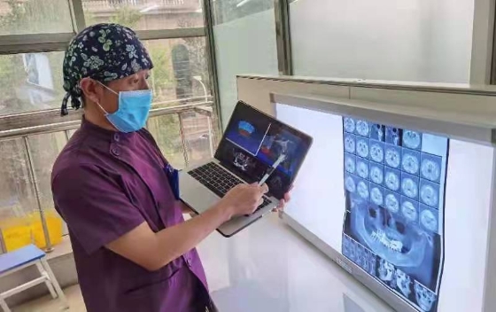 依托于“口腔北斗系統(tǒng)”新技術(shù),劉鑫教授團(tuán)隊在數(shù)字化口腔種植領(lǐng)域精耕細(xì)作,迄今已圓滿完成了上百例數(shù)字化種植牙手術(shù)。與傳統(tǒng)“自由手”口腔種植技術(shù)相比,數(shù)字化口腔種植手術(shù)更加安全、精準(zhǔn)、微創(chuàng)、高效、舒適。同時,個性化的手術(shù)設(shè)計方案借助數(shù)字化的直觀、立體形式呈現(xiàn)在患者面前,便于醫(yī)患間直接面對面交流,既提升了種植手術(shù)的精確度和成功率,又節(jié)約了手術(shù)時間,減少了手術(shù)創(chuàng)傷,降低了術(shù)后并發(fā)癥。