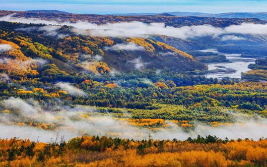 黑龍江經(jīng)濟(jì)網(wǎng)訊(記者魏?。┖邶埥那锾?,是大自然饋贈(zèng)的最華麗的狂歡,那濃得化不開(kāi)的五花山色,明艷動(dòng)人,一望無(wú)際,似列維坦筆下寫實(shí)的秋彩:各類喬木正由綠向金黃漸變,當(dāng)中夾雜著火紅的楓葉、蒼翠的松枝、銀白的瀑布……比起夏日滿眼的綠色,更多了一份五彩繽紛的浪漫,一條條通向天際線的公路,仿佛可以直達(dá)天界。