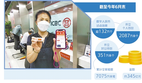 數(shù)據(jù)顯示,截至9月10日,工行北京分行試點(diǎn)的數(shù)字人民幣應(yīng)用場(chǎng)景達(dá)8萬(wàn)多個(gè),集中在與社會(huì)民生緊密相關(guān)的交通出行、餐飲住宿、購(gòu)物消費(fèi)、旅游觀光、醫(yī)療衛(wèi)生、通信服務(wù)、票務(wù)娛樂(lè)7大類場(chǎng)景。中國(guó)人民銀行近期發(fā)布的《中國(guó)數(shù)字人民幣的研發(fā)進(jìn)展》白皮書(shū)顯示,截至今年6月末,數(shù)字人民幣試點(diǎn)場(chǎng)景已超132萬(wàn)個(gè),開(kāi)立個(gè)人錢(qián)包2087萬(wàn)余個(gè)、對(duì)公錢(qián)包351萬(wàn)余個(gè),累計(jì)交易筆數(shù)7075萬(wàn)余筆、金額約345億元。
