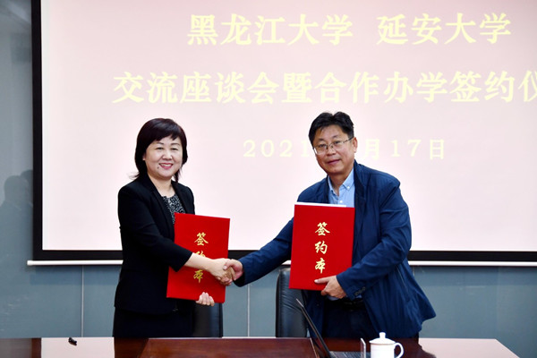 黑龍江經(jīng)濟網(wǎng)訊(全媒體見習(xí)記者 董廣碩 商祺)近日,黑龍江大學(xué)與延安大學(xué)在延安大學(xué)新城校區(qū)簽訂合作辦學(xué)框架協(xié)議。黑龍江大學(xué)黨委書記王永清、副校長于文秀,延安大學(xué)黨委書記張金鎖、副校長呂達(dá)、副校長譚虎娃等出席會議。
