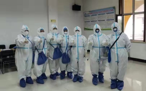 自2020年1月感染內(nèi)科全體醫(yī)護承擔(dān)起發(fā)熱門診此項艱巨任務(wù),一樓設(shè)立為發(fā)熱門診留觀室,二樓為核酸未出結(jié)果者緩沖病房,三樓、四樓為核酸陰性但尚未解除隔離的留觀病房。此次根據(jù)疫情防控要求,在原本樓層多,醫(yī)護工作“戰(zhàn)線”長的情況下,還特別設(shè)立了“巴彥”疫區(qū)專屬樓層。來自風(fēng)險區(qū)患者就診時,在隔離區(qū)的一名醫(yī)生和一名護士每個班次經(jīng)常工作6-8小時,樓上樓下的反復(fù)奔走,裹著密不透氣的防護服,汗水濕透衣背。長時間的不能喝水吃飯如廁,挑戰(zhàn)人體生理忍耐極限,但從未有人叫苦委屈。白班的同志在結(jié)束日間工作后,為了解決科室人員少,且工作量大的情況,主動留下加班到很晚,而第二天還要支援社區(qū)全員核酸采集任務(wù)。