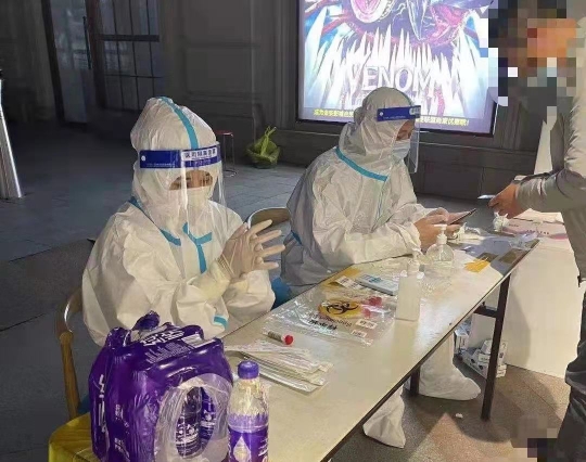 在做好發(fā)熱門診本職工作的同時,護理團隊還全力支援社區(qū)全員采集核酸任務(wù)。有的同志在忙碌了一夜夜班后,連家都沒回,又立刻投身到核酸采樣任務(wù)中。時間緊任務(wù)重,經(jīng)常早上4、5點鐘就要出發(fā)集合去采樣地點,直到晚10點左右才結(jié)束工作。采樣地點多在室外,氣溫低,更是放棄了吃飯休息的時間,爭分奪秒地為一個又一個居民采樣。長達十幾個小時的高壓工作,導(dǎo)致肩頸、手腕損傷,但就算這樣,也從未有人下“戰(zhàn)場”。