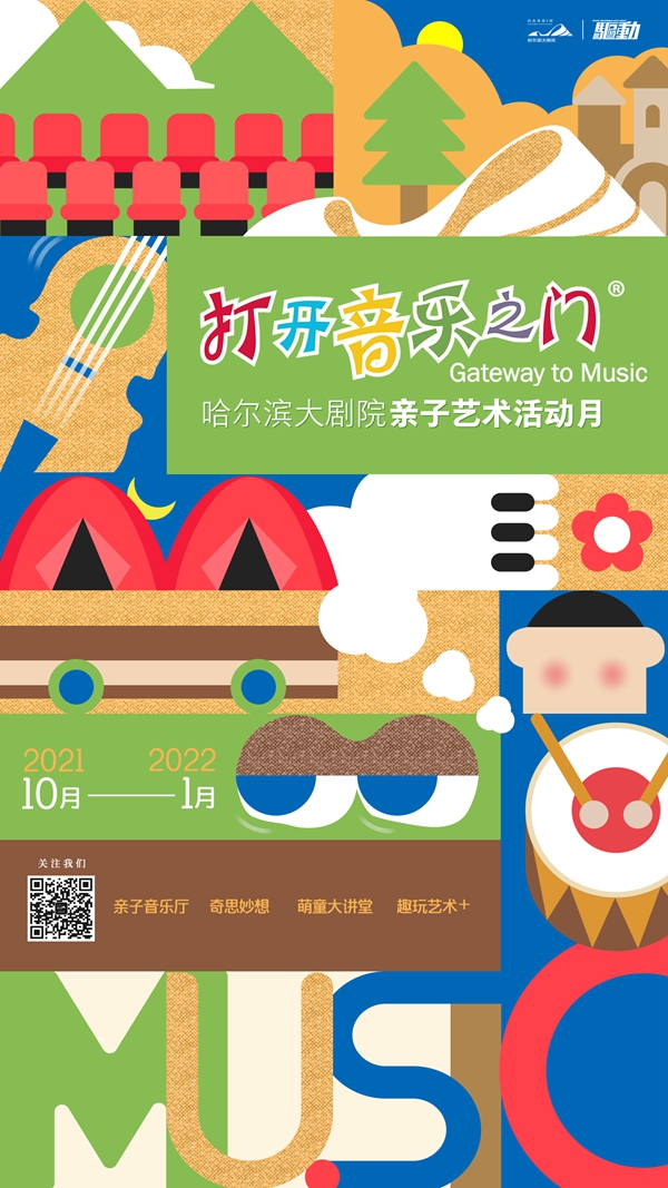 本次“打開音樂之門”藝術(shù)活動月精選如夢令——何怡中國詩詞琴歌音樂會、宮崎駿遇到久石讓——BABY樂團視聽音樂會、親子音樂會《溫暖的抱抱》、光影里的音符——影視交響音樂會、雪域圣音——陀樂樂團非遺世界音樂會、親子音樂會《童話總動員》、繪本兒童劇《猜猜我有多愛你》、《瞳年音樂蛋糕昉》、木蘭原創(chuàng)兒童劇《彼得·潘》、《村上春樹的爵士歌單——“磁”爵士樂隊講解型音樂會》等優(yōu)質(zhì)演出項目,以超值的購票套餐引領觀眾走進藝術(shù)殿堂。此外,觀眾還可以通過哈爾濱大劇院公眾號報名參加“小小文創(chuàng)設計師”、“劇院奇妙夜”等藝術(shù)活動,讓多彩的藝術(shù)之光照亮少年兒童的成長之路。