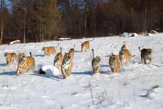 令人震撼的鏡泊湖吊水樓的冰瀑是牡丹江冬季的重要景點(diǎn)之一。在冰凌交錯(cuò)、銀裝素裹的純凈世界里,世界吉尼斯紀(jì)錄創(chuàng)造者——中國懸崖跳水奇人狄煥然,在零下二十多度的鏡泊湖吊水樓冰瀑上,伸展雙臂,凌空一躍,撲向不結(jié)冰的黑龍?zhí)端?,跳入落差?0米的水中,成為鏡泊湖景區(qū)冬季的一道獨(dú)特景觀。鏡泊湖水系水質(zhì)較好,水產(chǎn)資源極為豐富,大約有六十多種魚,冬季體驗(yàn)鏡泊湖的大網(wǎng)捕魚、小網(wǎng)掛魚,在每年辭舊迎新之際看一場(chǎng)冬捕,絕對(duì)是預(yù)示著年年有余好兆頭的絕佳體驗(yàn)。在漁夫們高亢的號(hào)子聲中,800多米長的大網(wǎng)從冰洞中漸漸滑出,胖頭魚、鯽魚、鯉魚等翻滾著、跳躍著,冒著熱氣蹦到冰面,“萬尾鮮魚出玉門”的奇觀景象讓人感嘆不已。橫道東北虎林園是世界上最大的東北虎人工飼養(yǎng)繁育基地和野化訓(xùn)練基地。在幾代養(yǎng)虎人的辛勤努力下,已繁育活體東北虎1100余只,建有猛虎園、靈長類館、幼虎生態(tài)館、高空玻璃棧道、珍稀動(dòng)物觀賞園、科普展覽館、觀虎長廊、虎文化廣場(chǎng)等多個(gè)景點(diǎn)。在這里,可以感受到獸中之王奔跑在蒼茫林海雪原的風(fēng)馳電掣。也可以感受到成群東北虎躺臥在皚皚白雪“互談心事”的百般愜意,還可以領(lǐng)略到虎牛相斗、群虎撲食的驚險(xiǎn)刺激。