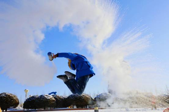 在三江口生態(tài)旅游區(qū)觀光塔上觀賞北國風(fēng)光、千里冰封、萬里雪飄的壯美景觀,體驗(yàn)潑水成冰的神奇感受,將冰花四濺的瞬間捕捉在鏡頭中,印刻在腦海里。