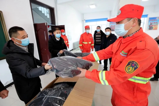 在森林消防大隊一樓活動室,司勇、張志良親切地與大隊干部職工交流談心,詳細(xì)了解森防隊員們的工作生活情況以及思想狀況,對他們“舍小家為大家”的敬業(yè)精神表示感謝,并逐一為隊員們分發(fā)了防寒羽絨服?!耙路笮『喜缓线m,穿在身上暖不暖和……”深切話語讓森防隊員們備感關(guān)懷,備受鼓舞,喜悅之情溢于言表。