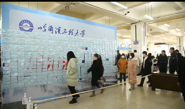 雖然疫情期間,學(xué)校處于封閉狀態(tài),但是哈工程的師生們用自己的方式為抗疫助力。在哈工程飲食中心的展板上以“程心程毅,抗疫有我”為主題,舉辦了一場千人取口罩的活動,學(xué)生們有序地保持間距,當(dāng)口罩全部取下的時候,“哈爾濱加油”幾個字慢慢呈現(xiàn),口罩的背面還有飲食中心準備的小驚喜,提供各種兌換券,現(xiàn)場的師生被展板上暖心鼓勵的話語和獨特的方式所感動。