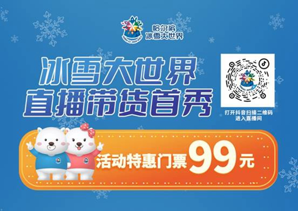 1月22日,哈爾濱冰雪大世界將啟動直播帶貨首秀。1月22日——24日連續(xù)3天,每天17:00——21:00相約哈爾濱冰雪大世界官方抖音直播間,搶鉅惠門票,抽取超多幸運(yùn)大獎。