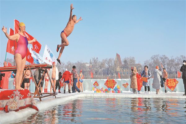 2月1日,正月初一。哈爾濱市冬泳協(xié)會(huì)的幾十位隊(duì)員,在會(huì)長(zhǎng)張友慶的帶領(lǐng)下,以冬泳的方式,迎接壬寅虎年的到來。松花江上的冬泳場(chǎng),披紅掛彩,貼上了福字。隊(duì)員們輪番從高臺(tái)、低臺(tái)上躍身而下,在江水中暢游。張友慶表示,大年初一,哈爾濱冬泳人響應(yīng)全民健身的號(hào)召,以冬泳的方式,積極參與到冰雪運(yùn)動(dòng)中來,以健康的身體、飽滿的精神,迎接北京冬奧會(huì)。