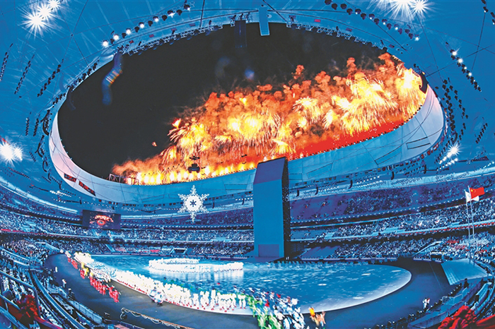 這是第二十四屆冬季奧林匹克運動會開幕式主火炬和焰火表演。 新華社記者 蘭紅光攝