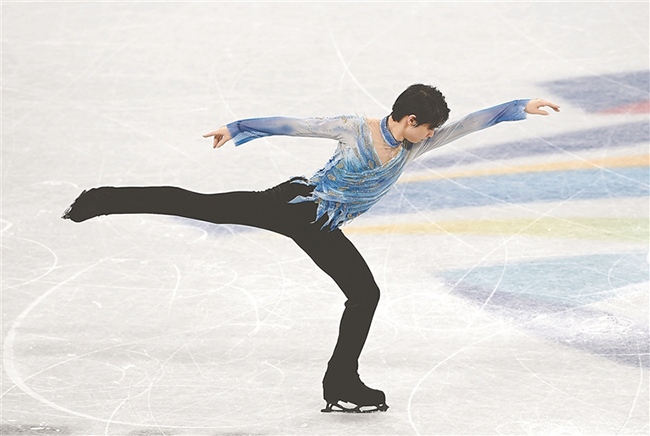 羽生結(jié)弦當(dāng)日第21個登場,他的第一個跳躍動作后內(nèi)結(jié)環(huán)四周跳跳空,技術(shù)動作分直接為0,雖然之后的后外點(diǎn)冰四周接三周跳以及阿克塞爾三周跳順利完成,但他最終只得到95.15分,位列第8。表演結(jié)束后,羽生結(jié)弦兩次來到出現(xiàn)失誤的位置,摸了摸冰面。