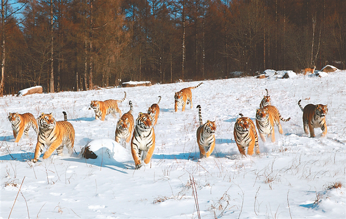 在這片冰天雪地之中,還有非??蓯?ài)的動(dòng)物。在東北虎林園和橫道東北虎林園中,雪地“跑酷”的東北虎盡展百獸之王的颯爽雄姿;齊齊哈爾扎龍國(guó)家級(jí)自然保護(hù)區(qū)的丹頂鶴,雪地起舞別有風(fēng)情;亞布力熊貓館中翻滾嬉鬧的佑佑和思嘉萌趣可愛(ài);哈爾濱極地公園的網(wǎng)紅“淘學(xué)企鵝”,在雪地散步憨態(tài)可掬;野生“狍子君”在大興安嶺的林中穿梭,聽(tīng)到聲音還會(huì)好奇的回頭……這些龍江冬日里的小可愛(ài)們,活力十足,讓人心生喜愛(ài)。