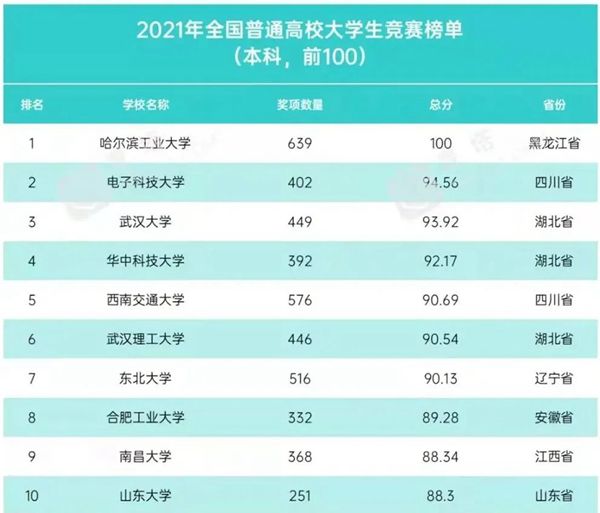 哈爾濱工業(yè)大學(xué)以獲獎數(shù)量1725項、總分100分的絕對優(yōu)勢獲得全國普通高校大學(xué)生競賽六輪總榜單冠軍。