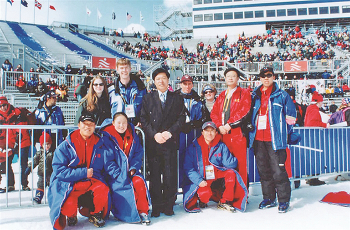 2002年我國(guó)首次派團(tuán)參加冬殘奧會(huì),圖為代表團(tuán)成員與志愿者合影。