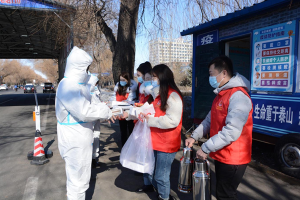 樺川縣稅務局組成青年志愿服務隊,攜帶保溫杯、熱水、水果等慰問品,深入樺川縣入口防疫卡點,慰問堅守在疫情防控一線的工作人員。青年志愿者們詳細詢問卡點防寒保暖、飲食安排等情況,對他們舍小家為大家、無私奉獻、敢于擔當?shù)木窠o予高度贊揚,向他們送去關心和問候,叮囑他們做好自身防護,合理安排休息時間。