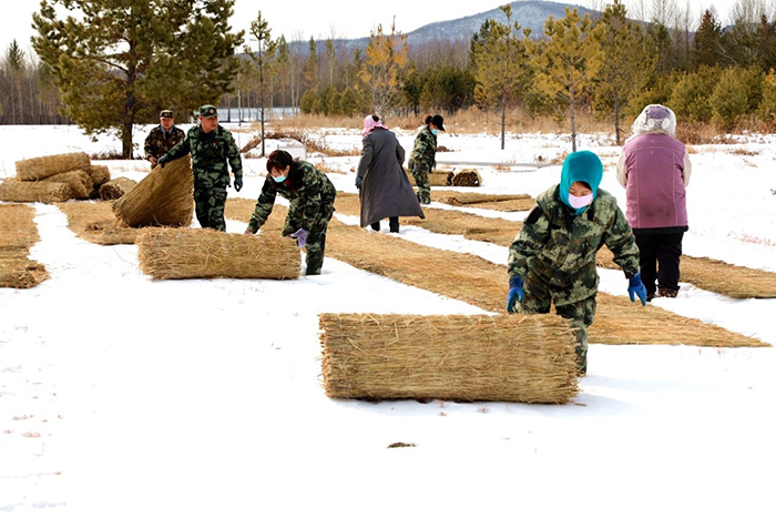 一年之計在于春。林業(yè)局中心苗圃針對興安落葉松、樟子松、西伯利亞紅松新播苗因受凍拔影響,導致苗木根部留露地面而枯死的實際問題,組織機關工作人員利用周末兩天時間,以義務獻工,對180萬余株苗木鋪蓋草簾子近5000延長米。