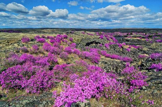 另一獨具北國風光特色的是“興安杜鵑”,又稱“映山紅”“達子香”“達達香”,粉紅色的花朵與純白色的雪山是黑龍江高山叢林之間的春季奇景。其中,在牡丹江鏡泊湖景區(qū)及周邊熔巖臺地盛開的杜鵑花,林在石上、石在花中、花在石上,石海、花海、林海形成罕見的自然奇觀。此外,齊齊哈爾龍江縣的杜鵑山景區(qū)、以興安杜鵑為市花的伊春小興安嶺、雙鴨山的大頂子山、黑河的錦河大峽谷、大興安嶺的百泉谷生態(tài)旅游風景區(qū)等地,都可以探尋到興安杜鵑的芳蹤。