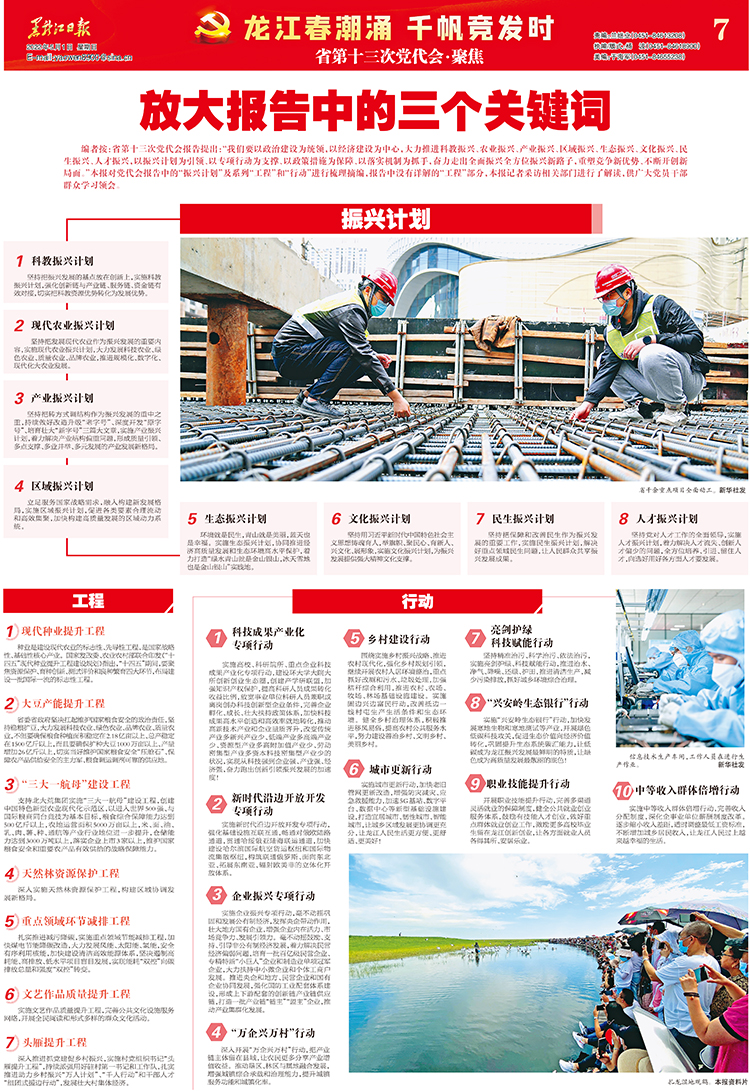 編者按:省第十三次黨代會報告提出:“我們要以政治建設(shè)為統(tǒng)領(lǐng),以經(jīng)濟建設(shè)為中心,大力推進科教振興、農(nóng)業(yè)振興、產(chǎn)業(yè)振興、區(qū)域振興、生態(tài)振興、文化振興、民生振興、人才振興,以振興計劃為引領(lǐng)、以專項行動為支撐、以政策措施為保障、以落實機制為抓手,奮力走出全面振興全方位振興新路子,重塑競爭新優(yōu)勢、不斷開創(chuàng)新局面。”本報對黨代會報告中的“振興計劃”及系列“工程”和“行動”進行梳理摘編,報告中沒有詳解的“工程”部分,本報記者采訪相關(guān)部門進行了解讀,供廣大黨員干部群眾學習領(lǐng)會。