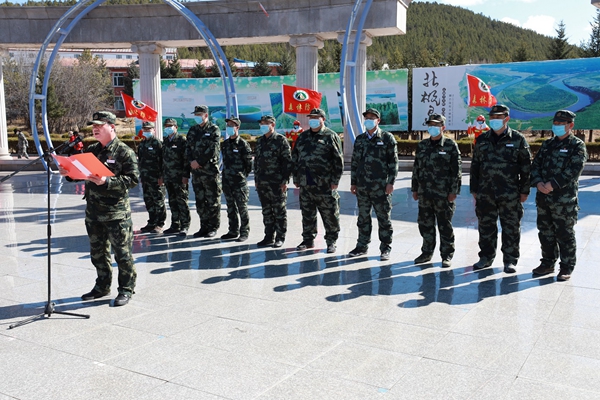 圖為阿木爾林業(yè)局專業(yè)撲火隊員組成的人員方隊(王力 攝)