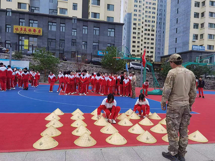 5月30日早8:00,初一學(xué)年100名學(xué)生分成四組開始了為期一天的拓展訓(xùn)練。拓展訓(xùn)練前,教練首先告訴同學(xué)們:軍人以服從紀(jì)律為天職,作為中國人應(yīng)懷著一顆感恩之心回報(bào)社會、建設(shè)祖國。