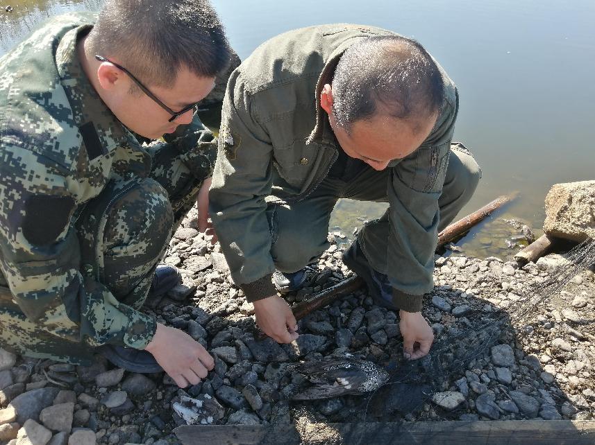 圖強(qiáng)林業(yè)局森林資源管理科工作人員在壯林林場(chǎng)施業(yè)區(qū)檢查工作時(shí),發(fā)現(xiàn)一只綠翅鴨被粘網(wǎng)粘住,資源科工作人員對(duì)其展開營救。