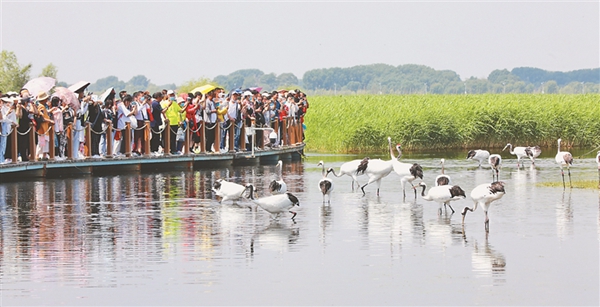 15日,第二個(gè)“鄉(xiāng)約扎龍·情滿鶴城”——“扎龍齊齊哈爾市民日”全面啟動(dòng)。當(dāng)日天藍(lán)水碧,徐徐微風(fēng)拂過,眾多游客來到國際重要濕地之一的扎龍濕地感受濕地風(fēng)光的壯闊之美,欣賞鶴舞云翔的自然之美。馬麗娟 宋燕軍 黑龍江日報(bào)全媒體記者 姚建平攝