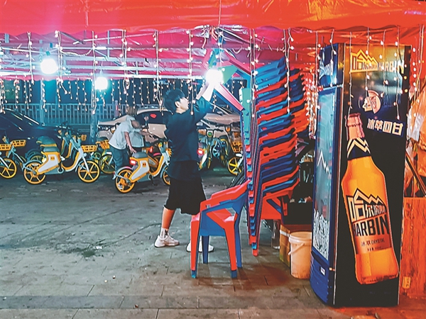 臨近晚10點大排檔開始收拾桌椅。