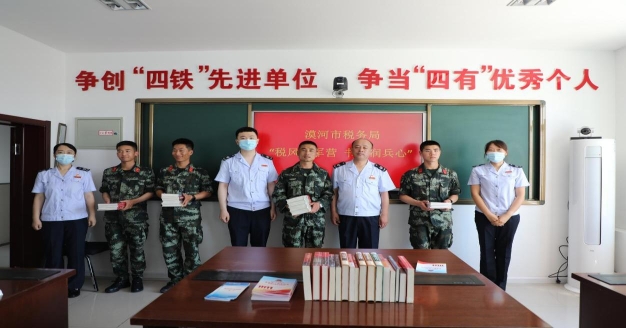活動(dòng)中,稅務(wù)干部為軍營官兵進(jìn)行了軍人相關(guān)稅收政策專題輔導(dǎo),為他們送上“退役軍人創(chuàng)業(yè)稅費(fèi)扣減”“隨軍家屬創(chuàng)業(yè)免征增值稅政策指南”“企業(yè)吸納退伍士兵就業(yè)稅費(fèi)扣減”“自主擇業(yè)的軍隊(duì)轉(zhuǎn)業(yè)干部免征個(gè)人所得稅”等政策大餐。專題輔導(dǎo)設(shè)置政策解讀、現(xiàn)場(chǎng)互動(dòng)、釋疑解問等諸多環(huán)節(jié),從明晰優(yōu)惠政策條件、納稅申報(bào)方式等不同角度,用通俗易懂的語言和生動(dòng)幽默的例子深入宣傳解讀相關(guān)稅收優(yōu)惠政策,打消官兵復(fù)退擇業(yè)的后顧之憂,幫助他們吃了一顆“定心丸”。專題輔導(dǎo)結(jié)束后,稅務(wù)干部向部隊(duì)官兵贈(zèng)送30余本書籍,并送上現(xiàn)行個(gè)稅費(fèi)種簡(jiǎn)介、退役軍人就業(yè)創(chuàng)業(yè)稅費(fèi)優(yōu)惠政策指引等宣傳冊(cè),給綠色軍營送去藍(lán)色溫暖。