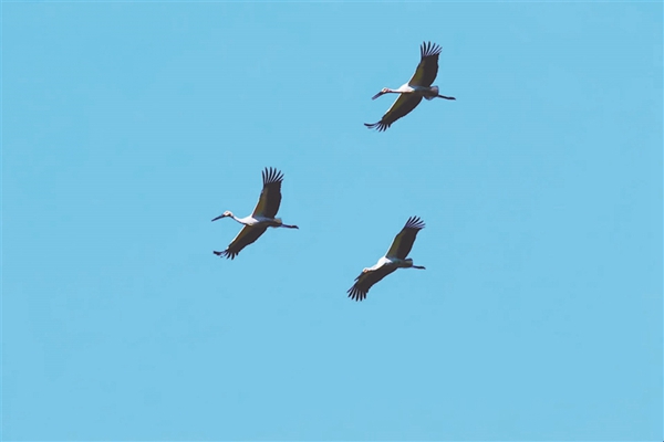 自由飛翔的白鸛。郭麗偉 付國新攝