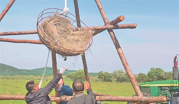 吊裝人工鳥巢。郭麗偉 付國新攝