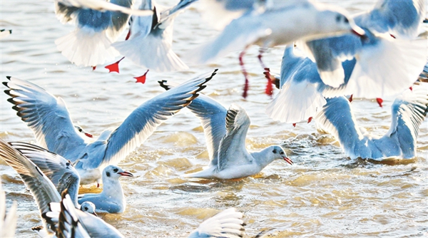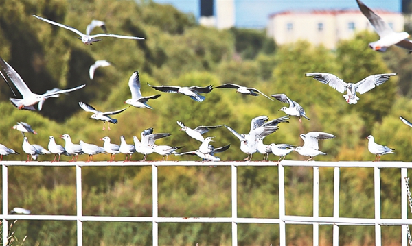 近年來,隨著環(huán)境保護(hù)力度的加大,松花江生態(tài)持續(xù)向好,水豐魚多,給紅嘴鷗等候鳥提供了豐富的食物。每年,都有超過萬只的紅嘴鷗春秋兩季在松花江這處“驛站”歇腳。  黑龍江日報記者 張澍攝