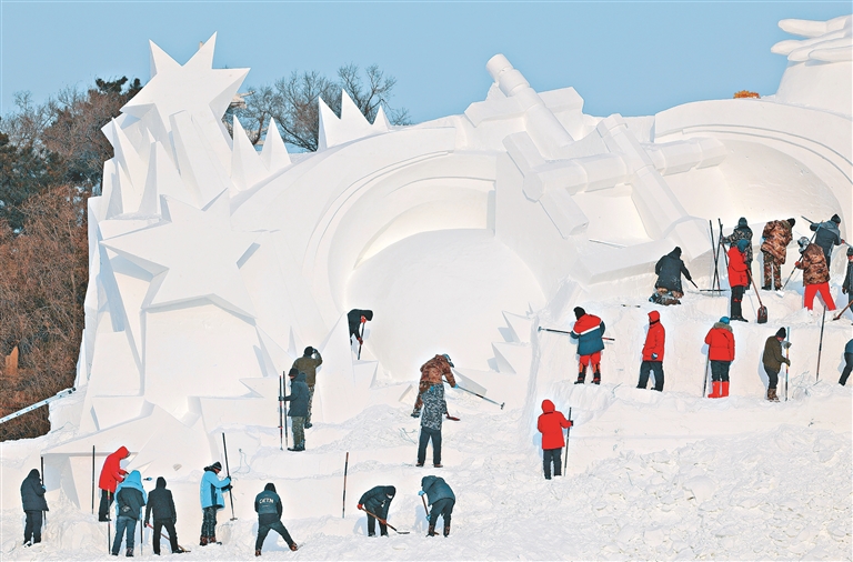 本報(bào)訊(記者 劉艷)記者從哈爾濱市太陽島風(fēng)景區(qū)獲悉,13日,第35屆哈爾濱太陽島雪博會大型主塑《逐夢》正式開鏟。主塑長100米,高33米,將由70余位雕刻師用一周左右的時(shí)間完成,用雪量近2.6萬立方米。